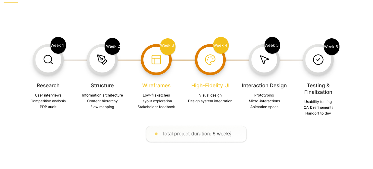As the UX designer for this initiative, I led the redesign of a unified PDP framework built on the Honeycomb design system, ensuring consistency, accessibility, and a premium brand experience across markets.